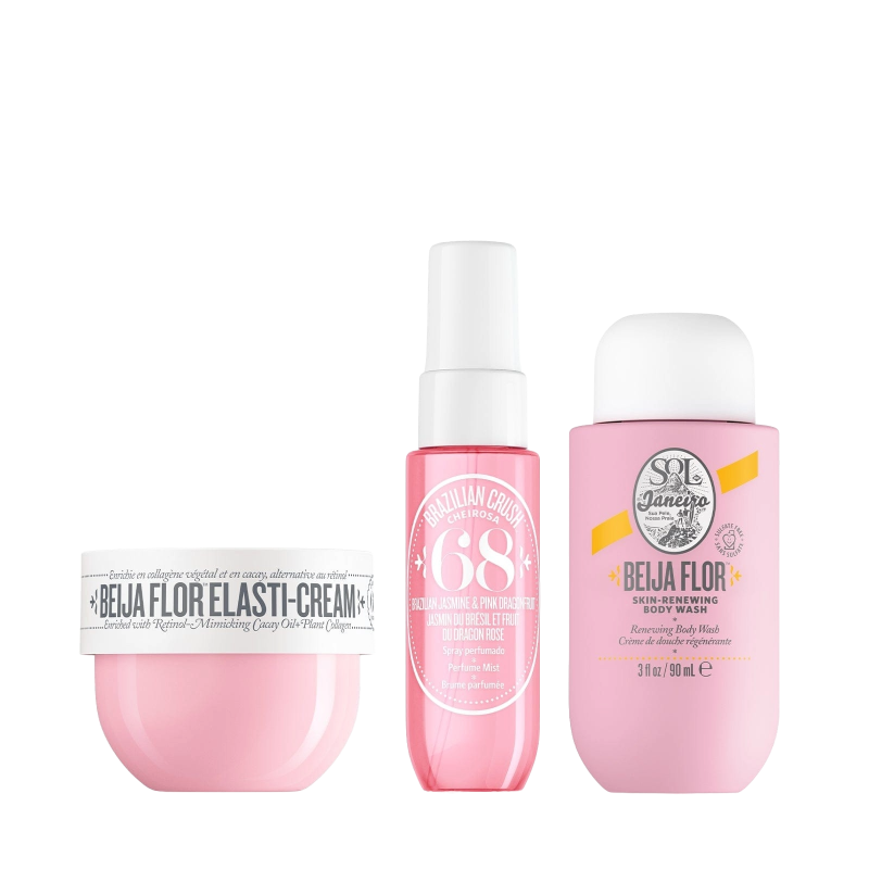 Plongez dans une expérience de soin complète inspirée du Brésil avec le Beija Flor Jet Set de SOL DE JANEIRO. Offrez à votre peau une hydratation et une nutrition luxueuses tout en vous imprégnant du parfum envoûtant du Brésil. Faites l’expérience d’une peau douce, lisse et magnifiquement parfumée avec cet ensemble de soins corporels complet.
